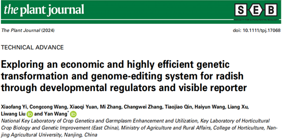 萝卜遗传育种团队在The Plant Journal发表了题为Exploring an economic and highly efficient genetic transformation and genome-editing system for radish through developmental regulators and visible reporter的研究论文。该研究通过将发育调节因子与可视化报告基因相结合,基于前期建立的发根农杆菌诱导毛状根系统成功建立了简单、高效的萝卜遗传转化和基因编辑技术体系。