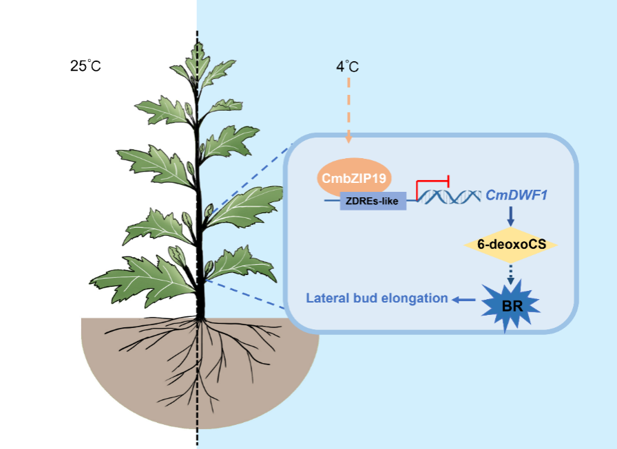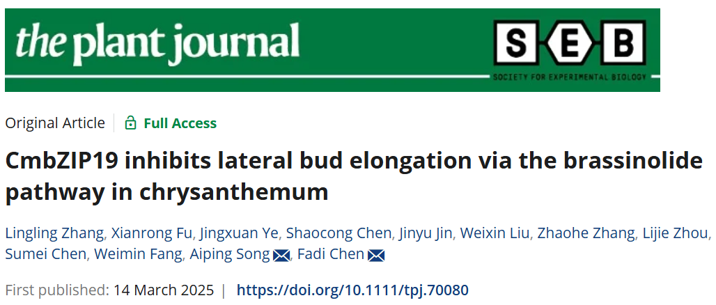 菊花遗传与种质创新利用团队在《Plant Journal》在线发表了题为“CmbZIP19 inhibits lateral bud elongation via the brassinolide pathway in chrysanthemum”的研究论文,揭示了菊花CmbZIP19通过抑制油菜素内酯(BR)合成来调节植物侧枝发育。