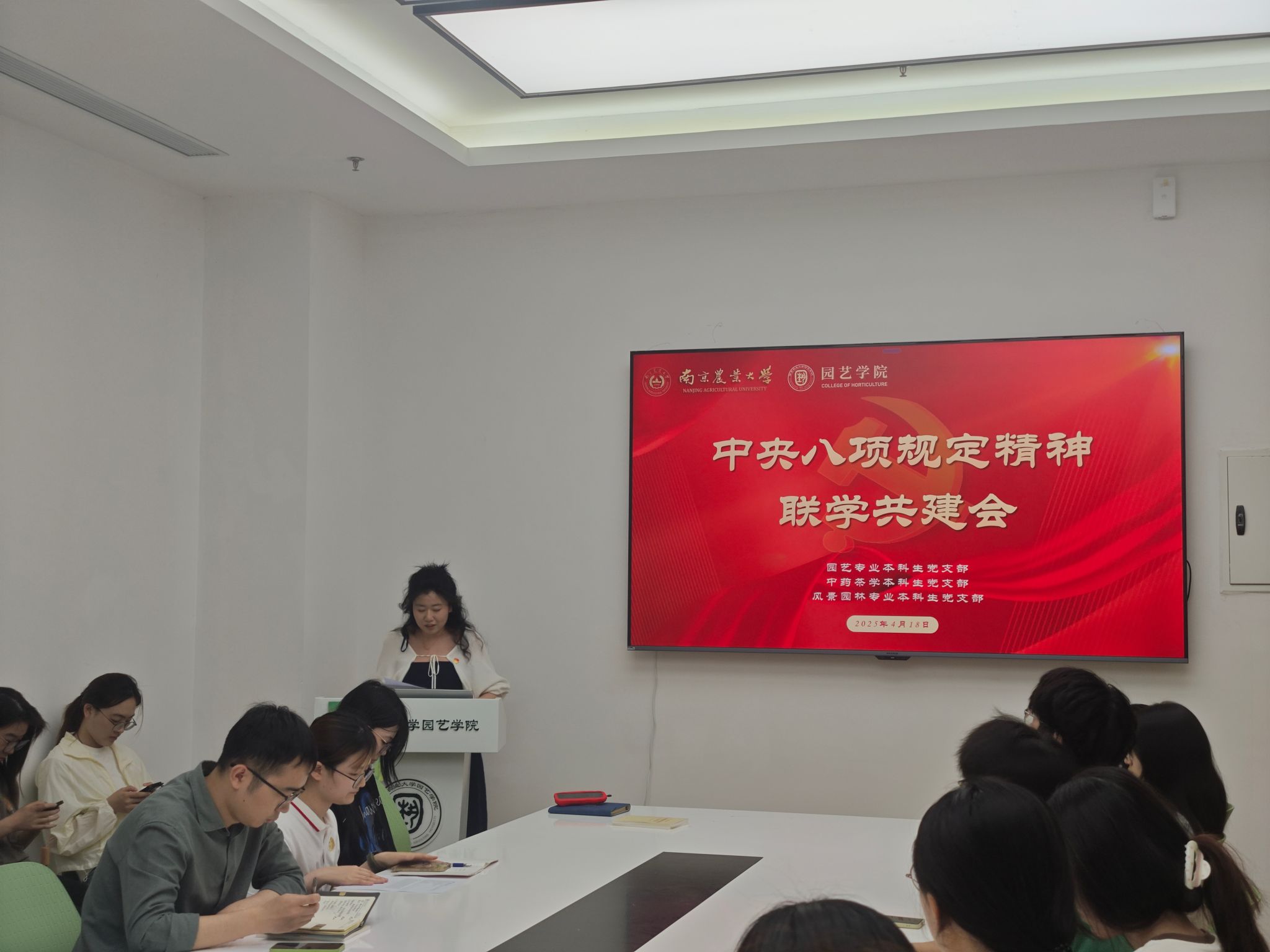 为深入学习贯彻中央八项规定精神,扎实推进党的作风建设,4月18日下午,天天a片 园艺专业本科生党支部、中药茶学本科生党支部、风景园林专业本科生党支部在园艺楼134联合举办“中央八项规定‘纪’在心上”专题党课暨《习近平关于党的作风建设论述摘编》(以下简称《摘编》)学习研讨会。天天a片 副院长张清海、院党委副书记石木舟出席指导,各党支部书记、副书记及党员代表参加活动。会议由园艺专业本科生党支部书记崔洋主持。