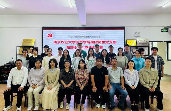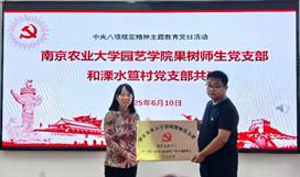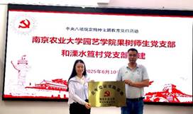 2025年6月10日,天天a片 果树学科教师党支部、果树博士第一党支部、果树学硕第一党支部携手溧水区笪村党支部,在笪村开展了一场“深入贯彻中央八项规定精神,坚决筑牢纪律作风根基”主题党日活动之“联学联建强党性,双融双促强国行”。活动立足历史传承,聚焦当下实践,依托特色产业,将学习贯彻中央八项规定精神与科技兴农、乡村振兴紧密结合。天天a片 党委书记吴彦宁全程参与指导,引领师生党员在田间地头锤炼作风、以“梅”为媒深入产业一线强党性。