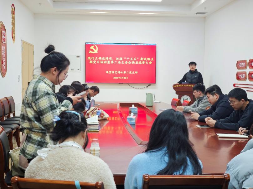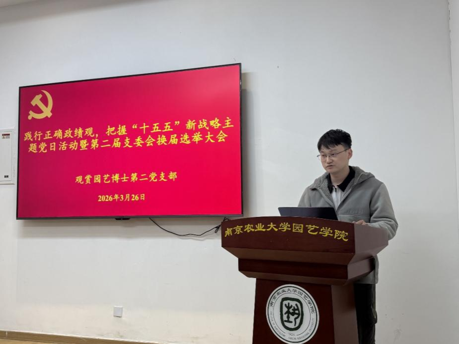 为深入学习贯彻正确政绩观,精准把握国家“十五五”时期重大战略部署,进一步加强党支部组织建设,充分发挥博士党员先锋模范作用,3月26日下午,观赏园艺博士第二党支部在园艺楼148会议室开展“践行正确政绩观,把握国家‘十五五’时期重大战略部署”主题党日活动,并召开第二届支委会换届选举大会。会议由党支部书记柳志勇同志主持,支部全体党员及入党积极分子参加。